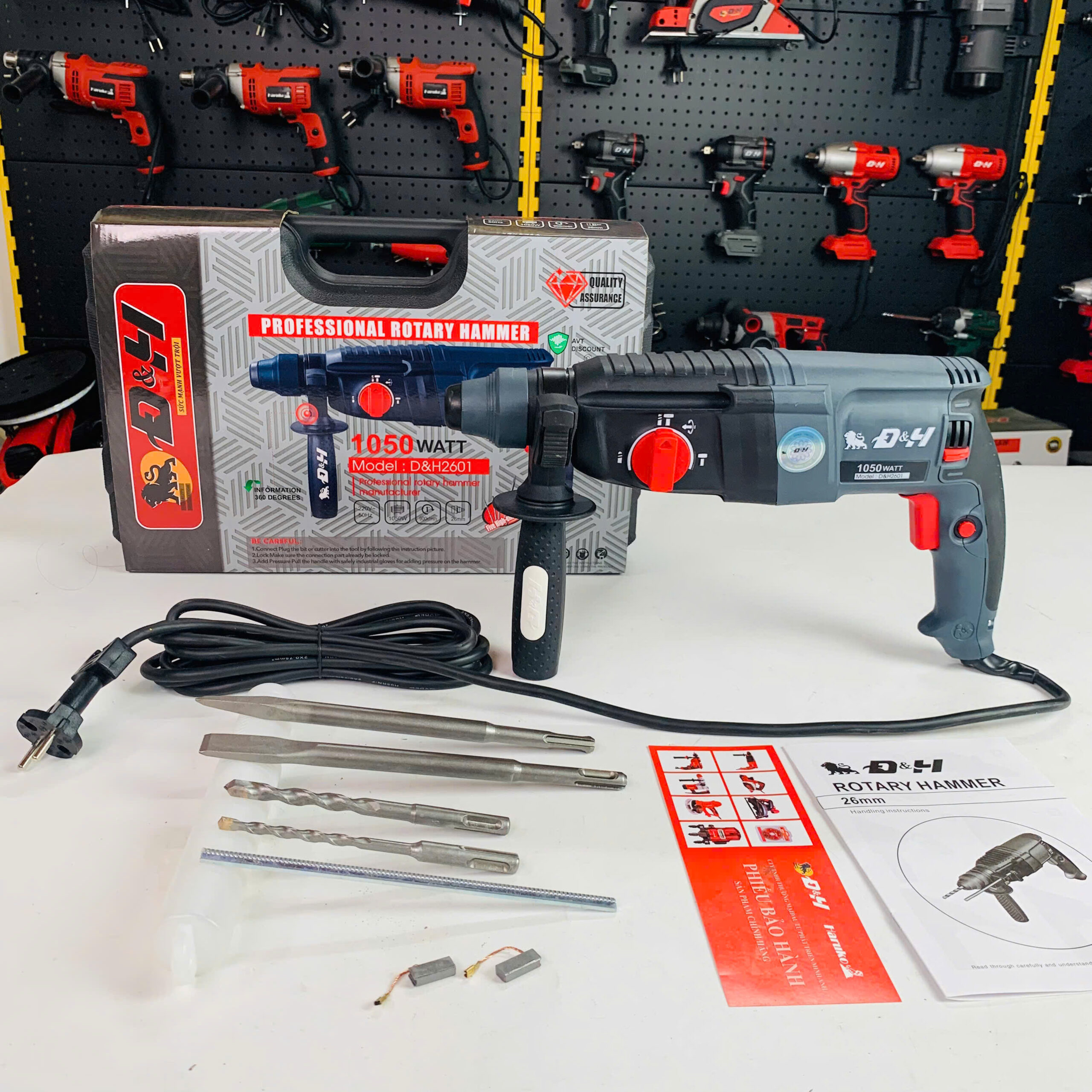 – DH-2601 có công suất đủ mạnh + mũi khoan/đục đa dạng, nên không bị “chùn” khi khoan/tường, bê tông, thép,… — đảm bảo khoan/ đục nhanh và hiệu quả.